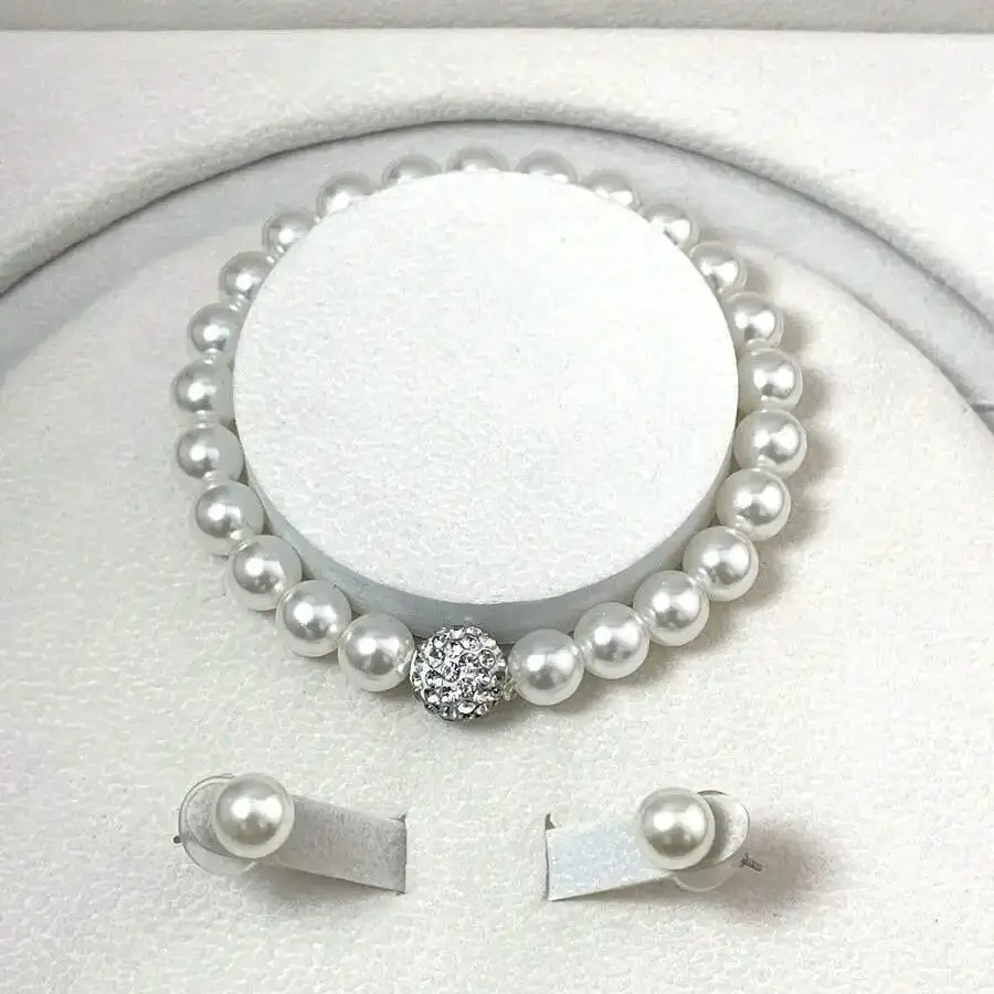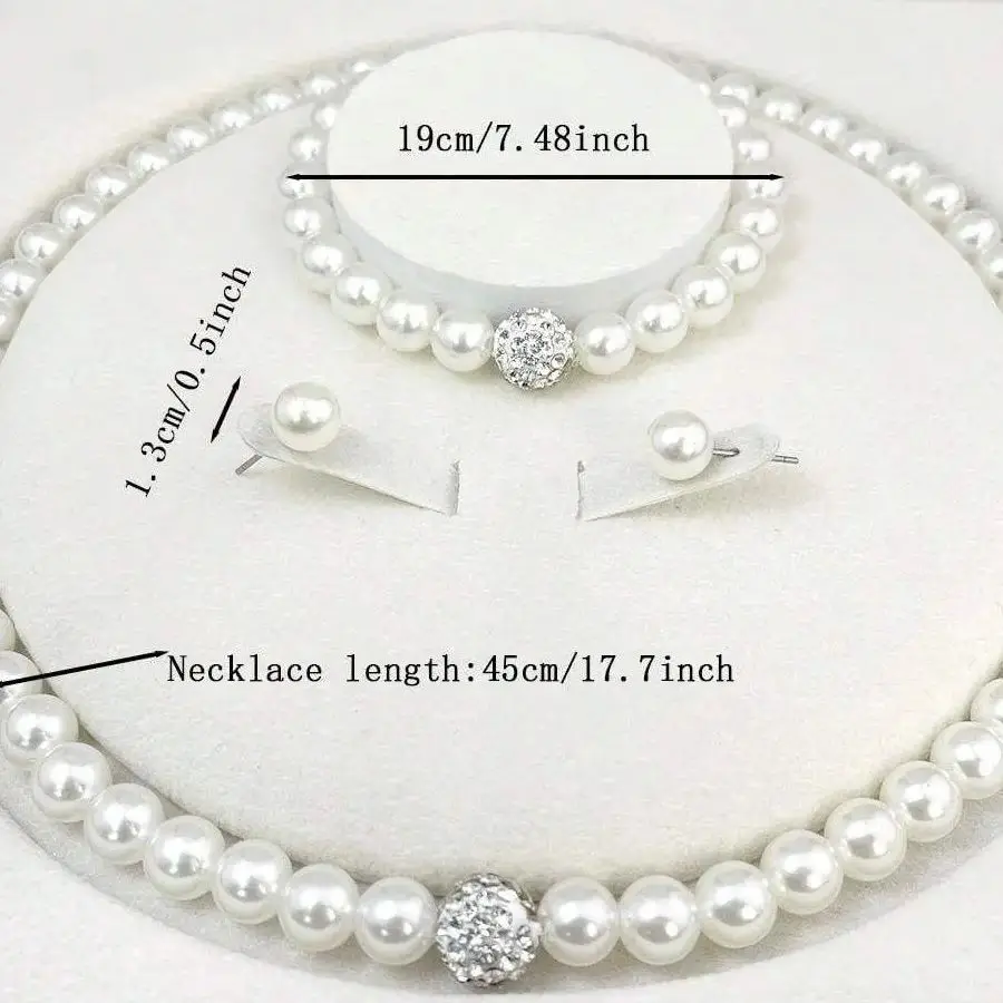 Nome: conjunto de 3 peças de imitação de pérola bola de fogo colar pulseira brinco conjunto de joias