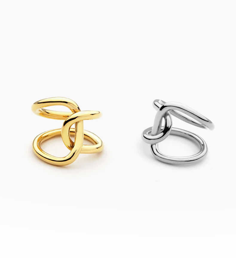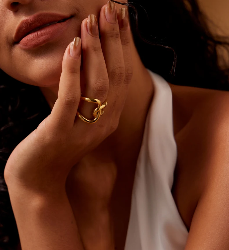 Anel com design escultural e banho de ouro 18K. Um símbolo de estilo e união.