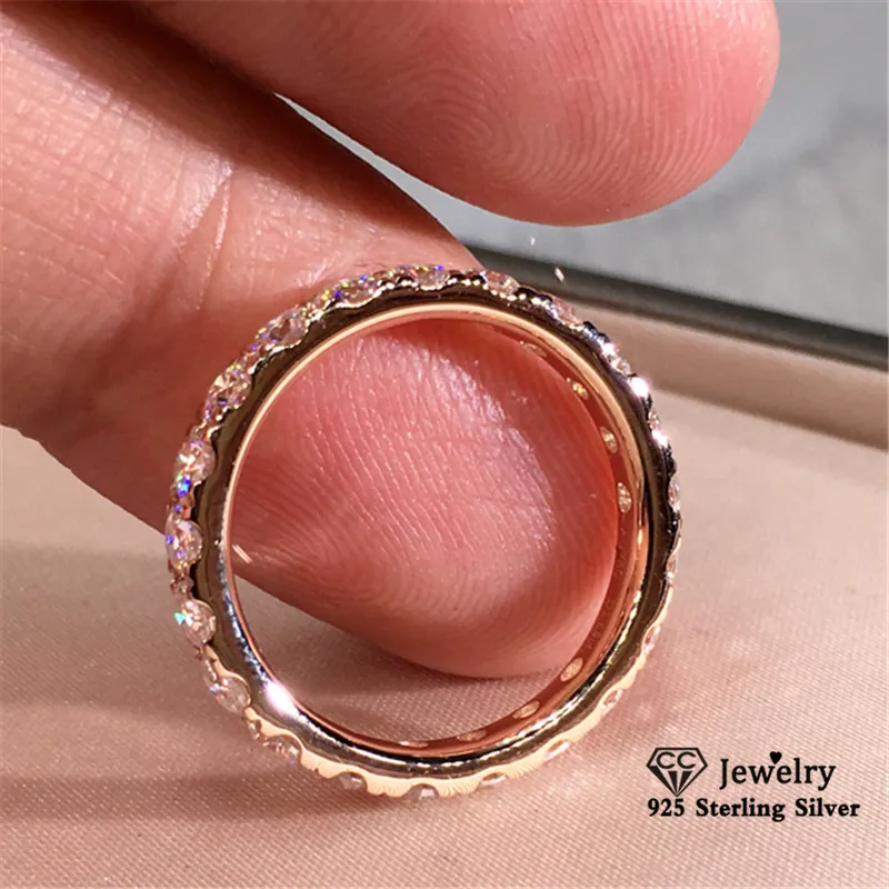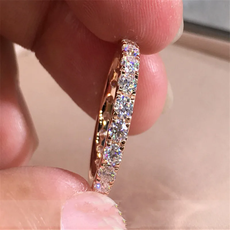 Anel com zircônias em corte redondo e acabamento em ouro rosé. Um clássico que celebra o amor.