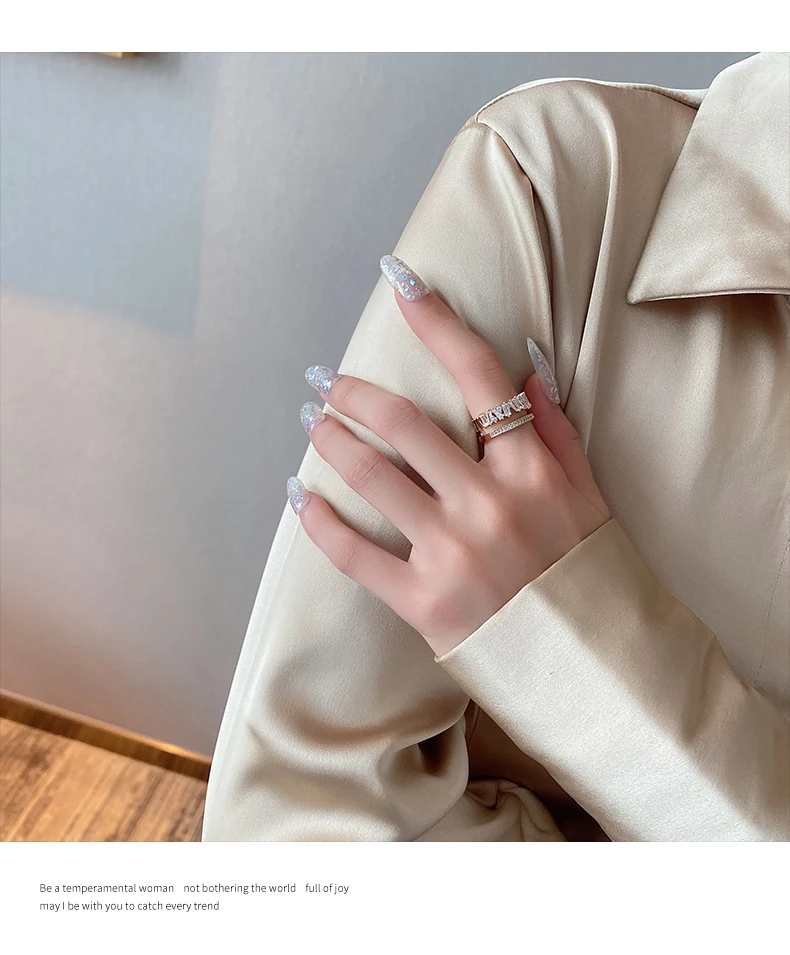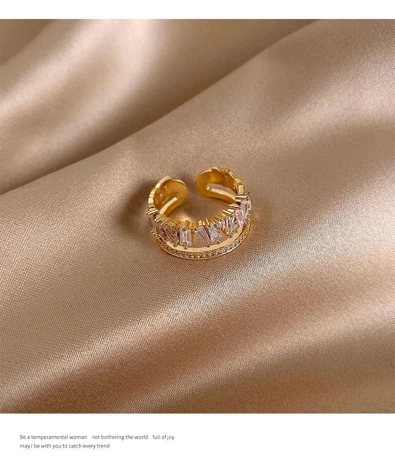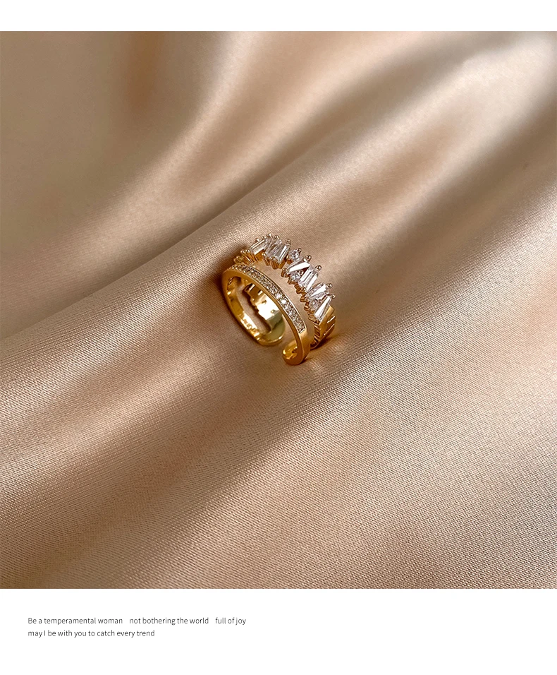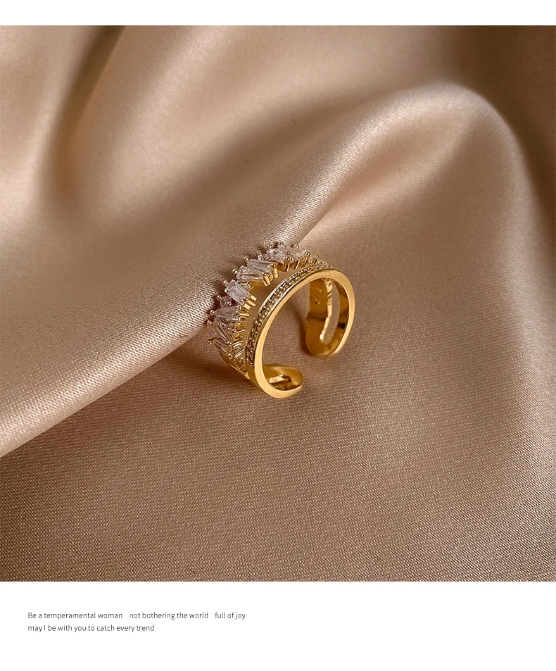 Anel Luxo Zircão LELU – Design Duplo Aberto Banhado a Ouro 18k