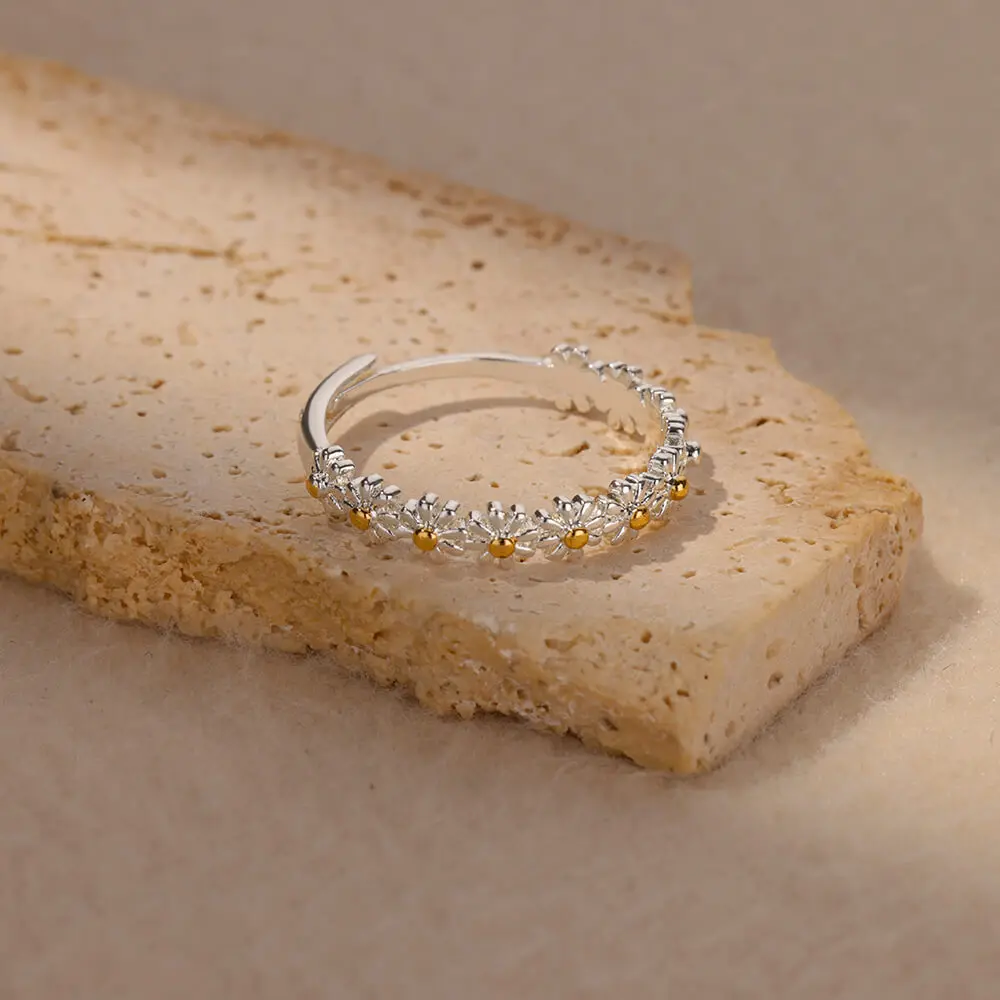 Anel Margaridas Dourado LELU – Delicadeza em Flor