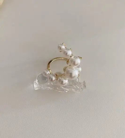 Anel feminino com pérola simulada e design geométrico delicado, ideal para compor looks elegantes.