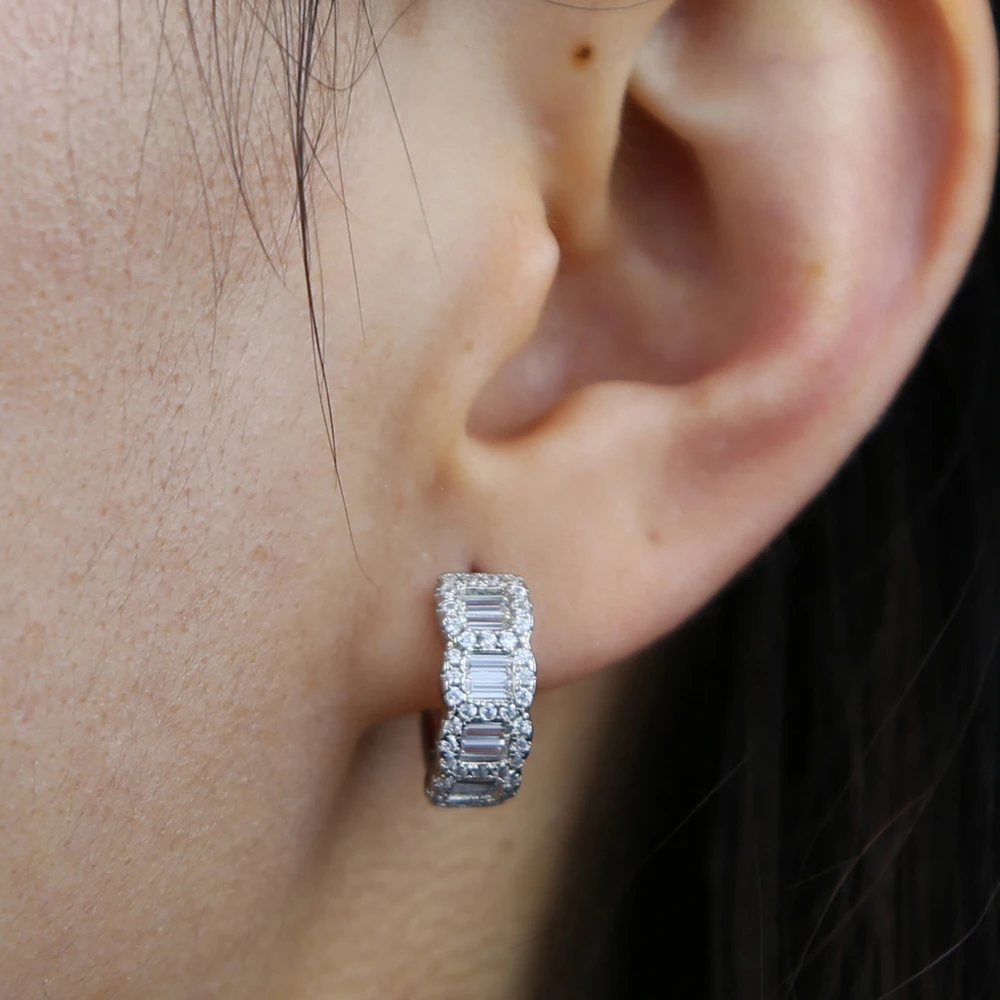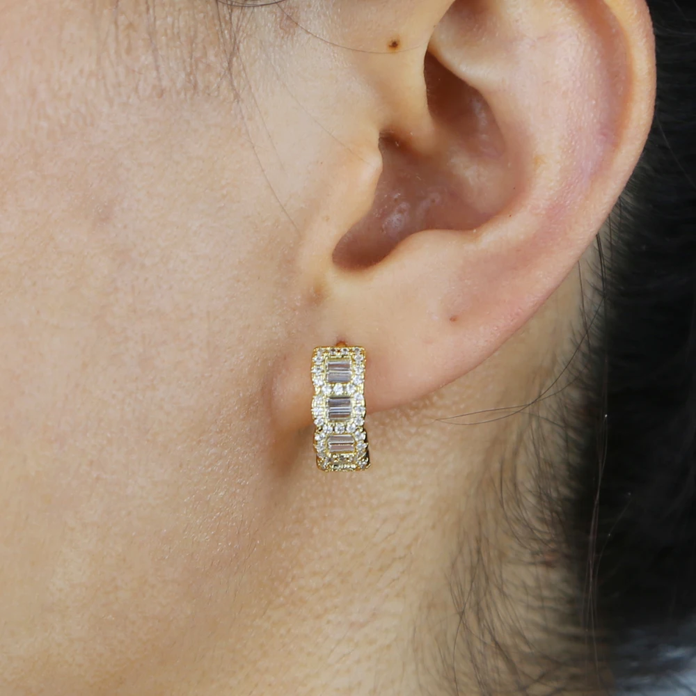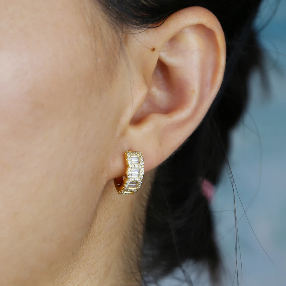 Brinco Argola Huggie Zircônia Baguete LELU – Luxo em Cada Detalhe