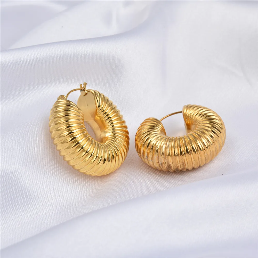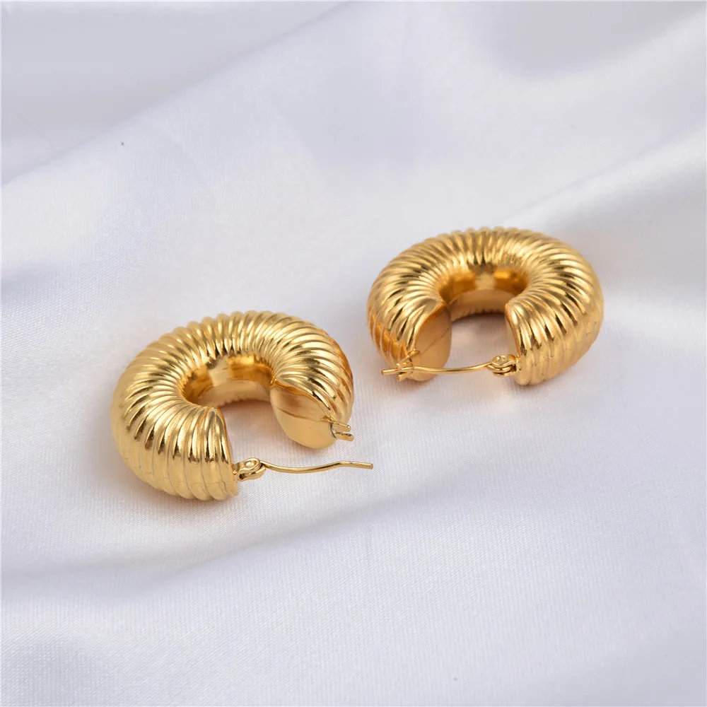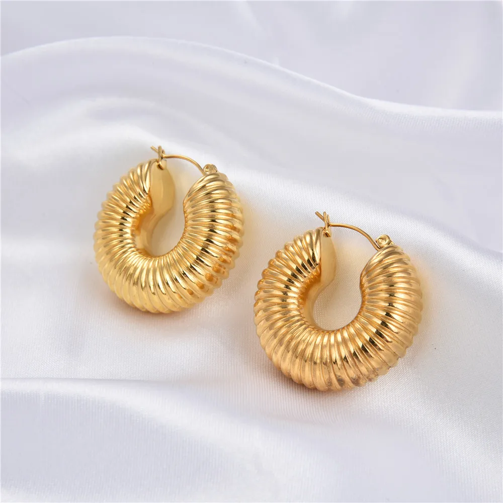 Argolas marcantes com textura canelada e acabamento dourado, perfeitas para destacar seu estilo.