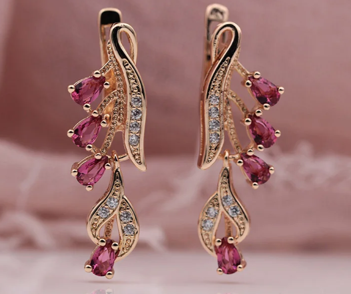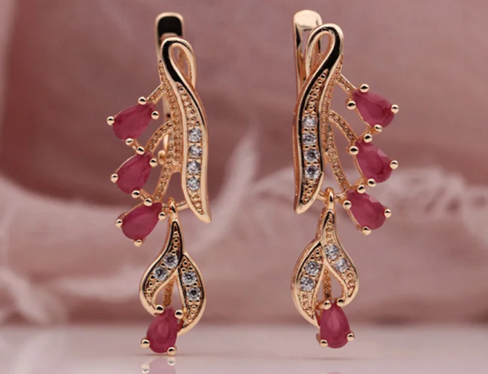 • Tipo: Brinco pendente com estrutura folhada