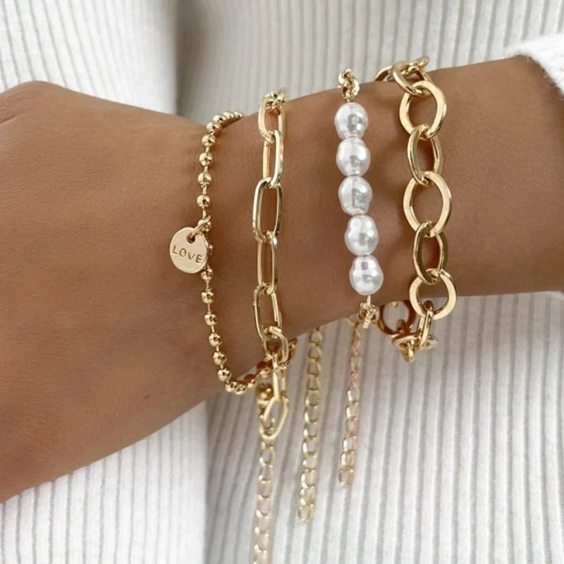 O Conjunto de Pulseiras Elo Dourado LELU é uma composição cheia de charme e personalidade. Com diferentes estilos de elos e detalhes delicados como pérolas e pingente com a palavra “LOVE”, esse conjunto é perfeito para quem ama misturar texturas e expressar sentimentos através da joia.