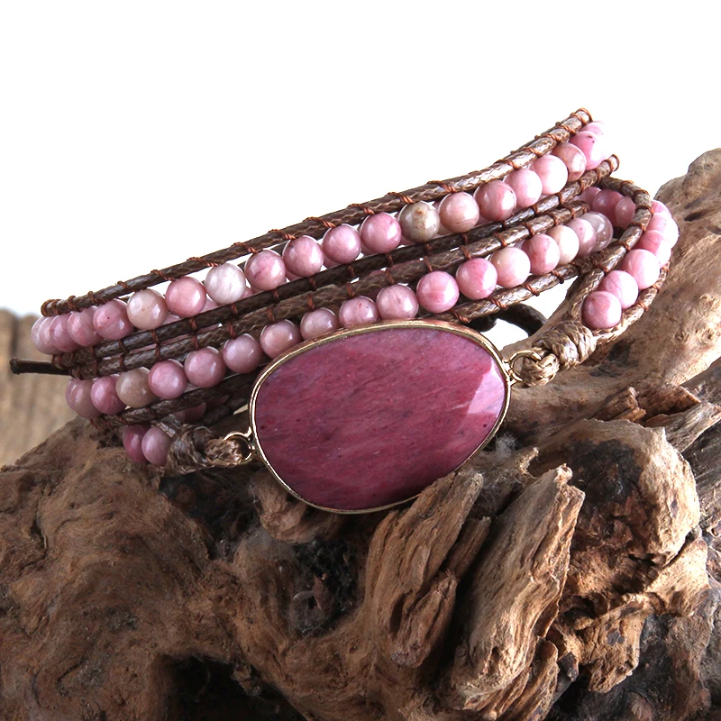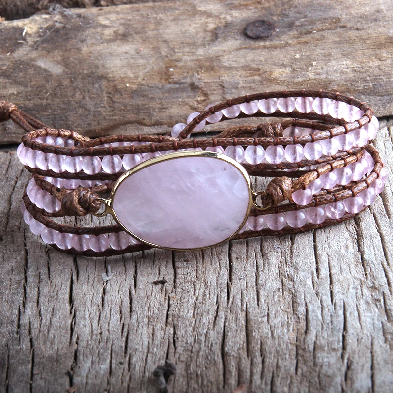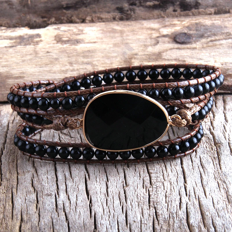 Pulseira Pedra Natural LELU – Wrap Boho com Pingente Oval
